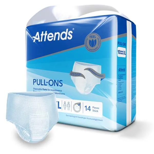 Attends Pull-Ons 10 sind weiche und diskrete Einmalhosen, die sich wie Unterwäsche anfühlen. Sie können ganz einfach an- und wieder ausgezogen werden und sind für mittlere bis starke Inkontinenz geeignet. Attends Pull-Ons bieten eine überlegene Passform für extra Tragekomfort. Ihr leistungsstarker Saugkern schützt vor Auslaufen und Geruch - für ein aktives Leben und ein sicheres Gefühl.