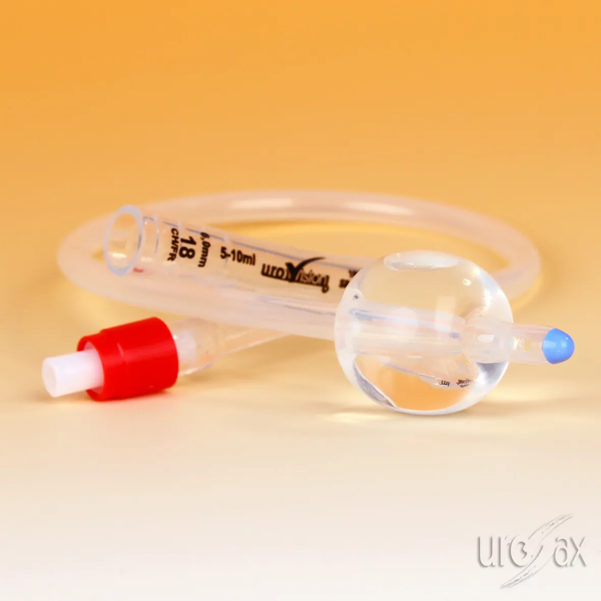 Steriler transparenter 2-Weg-Ballonkatheter aus Silikon mit gerader blauer Spitze (Nelaton), 2 Augen, ohne Katheterstopfen und aufgeklebtem Ballon. Der Katheter hat eine Länge von 40 cm, eine Ballonkapazität von 5 bis 10 ml und ist in den Größen CH 12 bis CH 22 erhältlich. Der Katheter hat eine ausgezeichnete Gewebeverträglichkeit und sehr geringe Inkrustationsneigung. Für Langzeit- und Kurzzeitdrainage geeignet. Durch den Ballon ist eine sichere Fixierung des Katheters in der Blase gewährleistet. Verstärkter Trichteransatz, hierdurch kein Einreißen des Trichters und sicheres Konnektieren des Urinbeutels möglich.